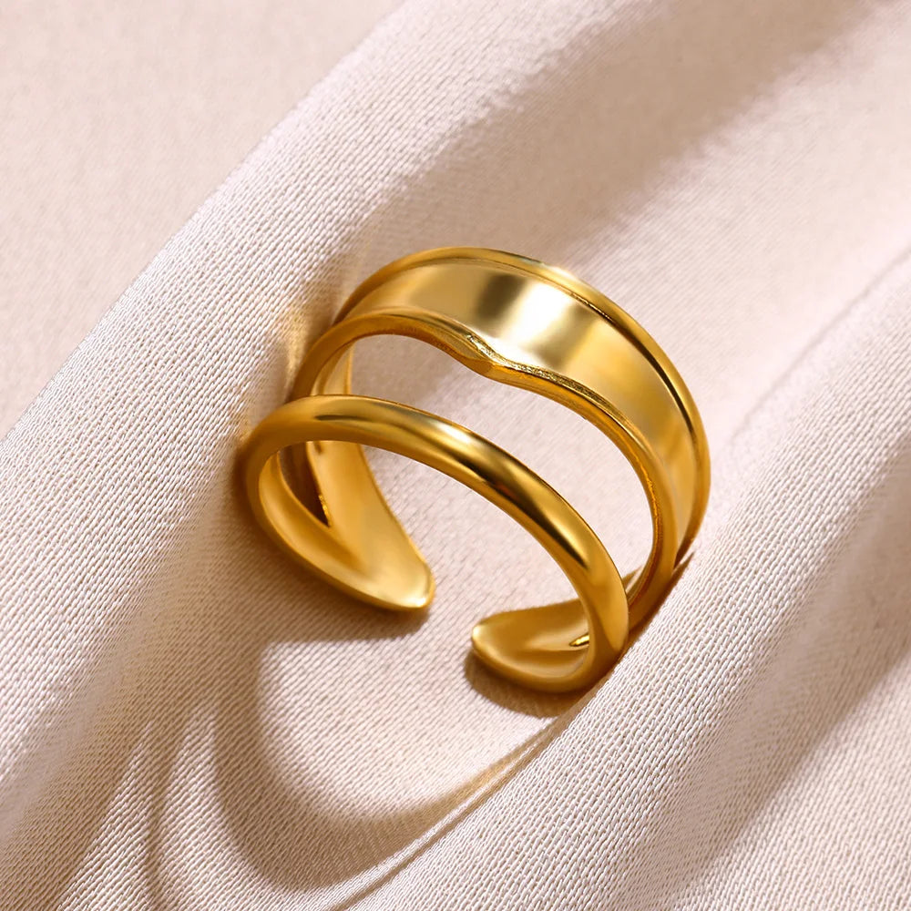Anello Regolabile Doppia Fascia in Acciaio Inossidabile